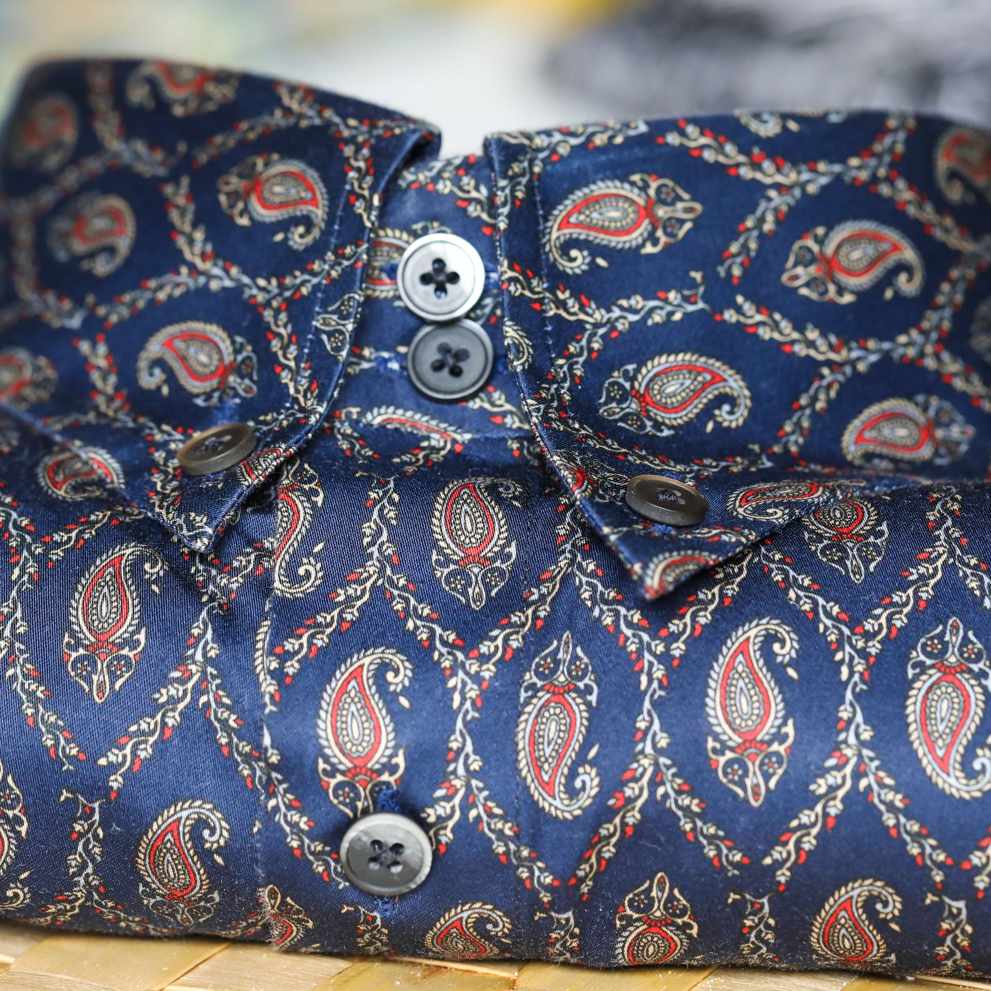 Men’s slim fit navy paisley shirt Bloom Colour 86.