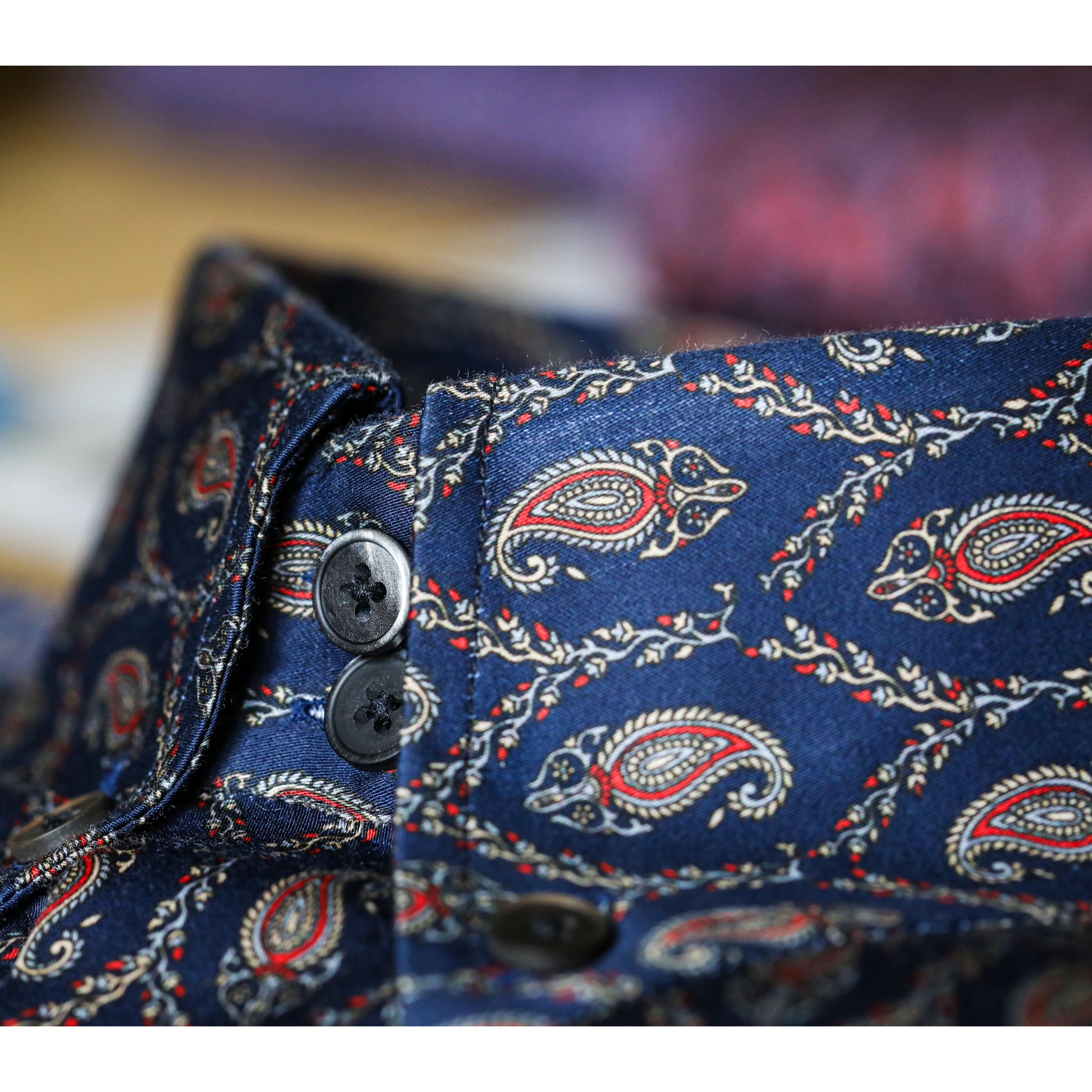 Title: Bloom Colour 86 — Digital Cotton Paisley Shirt (Navy)
