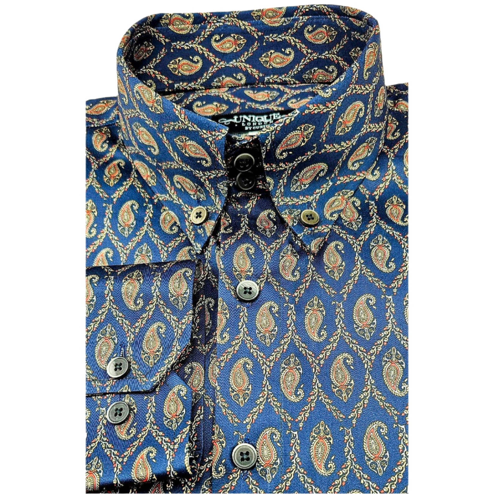 Crafted from 100% premium cotton, this shirt is digitally printed with a bold yet classic bloom-inspired paisley pattern, rendered in Colour 86: a rich navy backdrop layered with earthy tones of copper, rosewood, and ivory. The digital printing technique not only preserves intricate details with photographic precision but also ensures that colours stay vibrant over time and multiple washes.