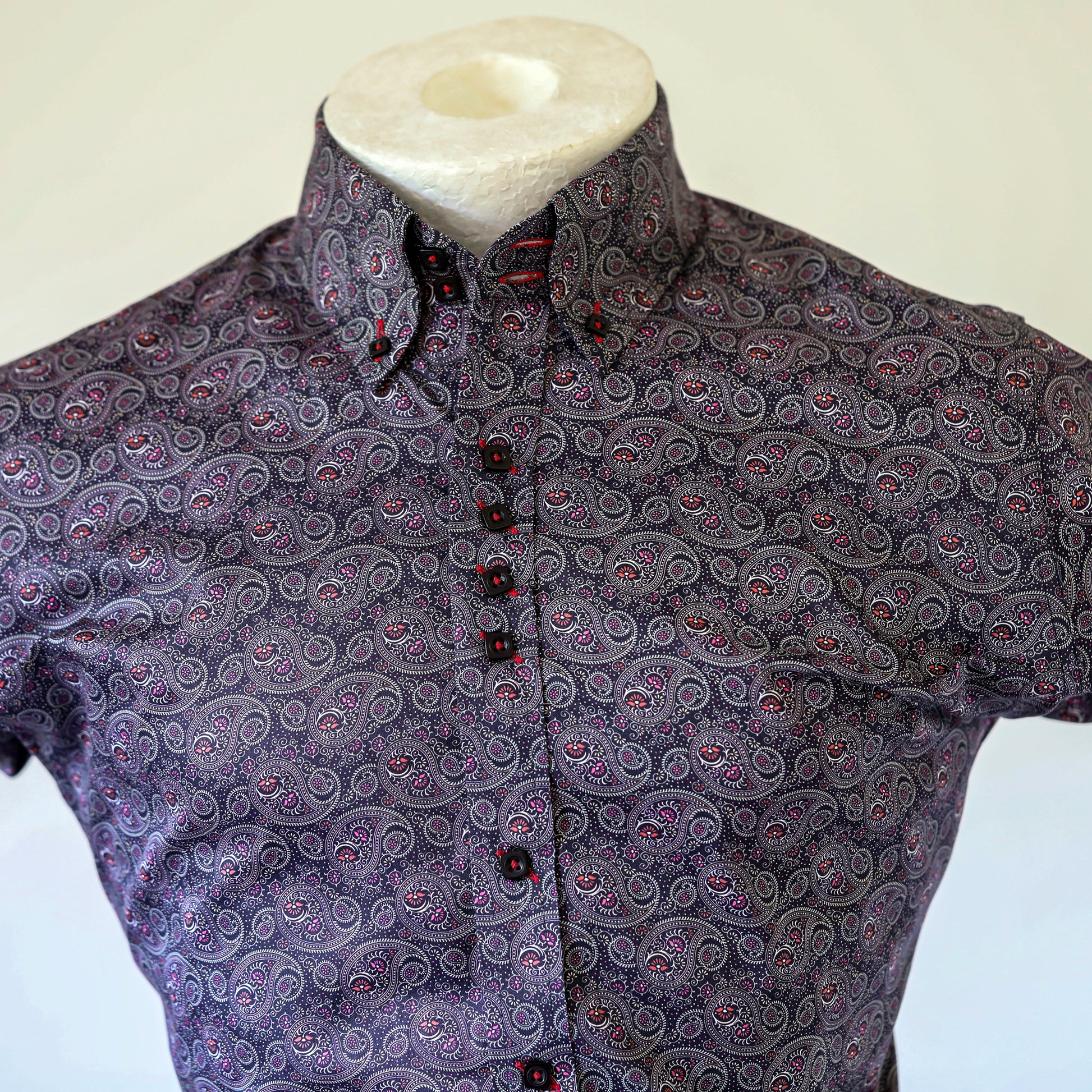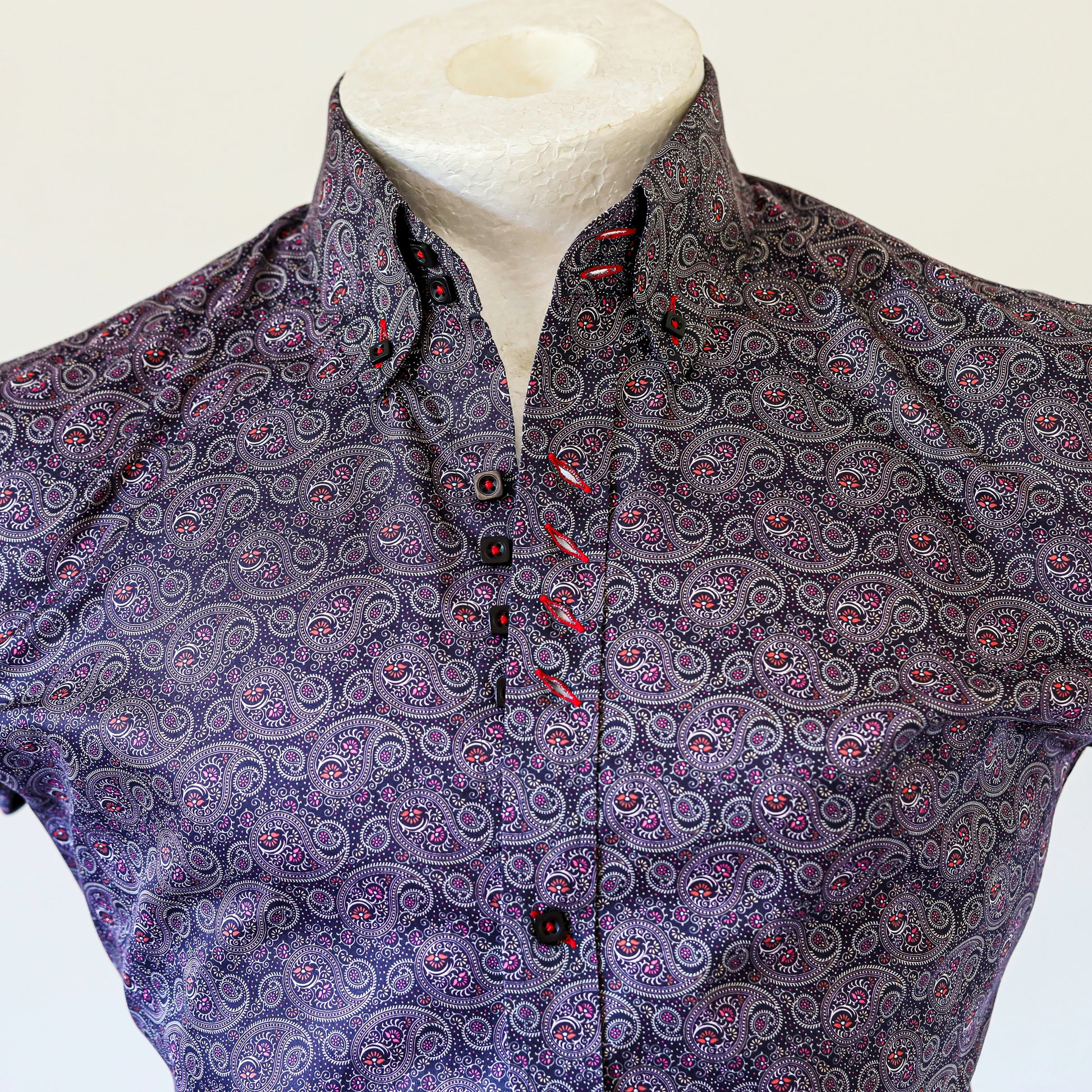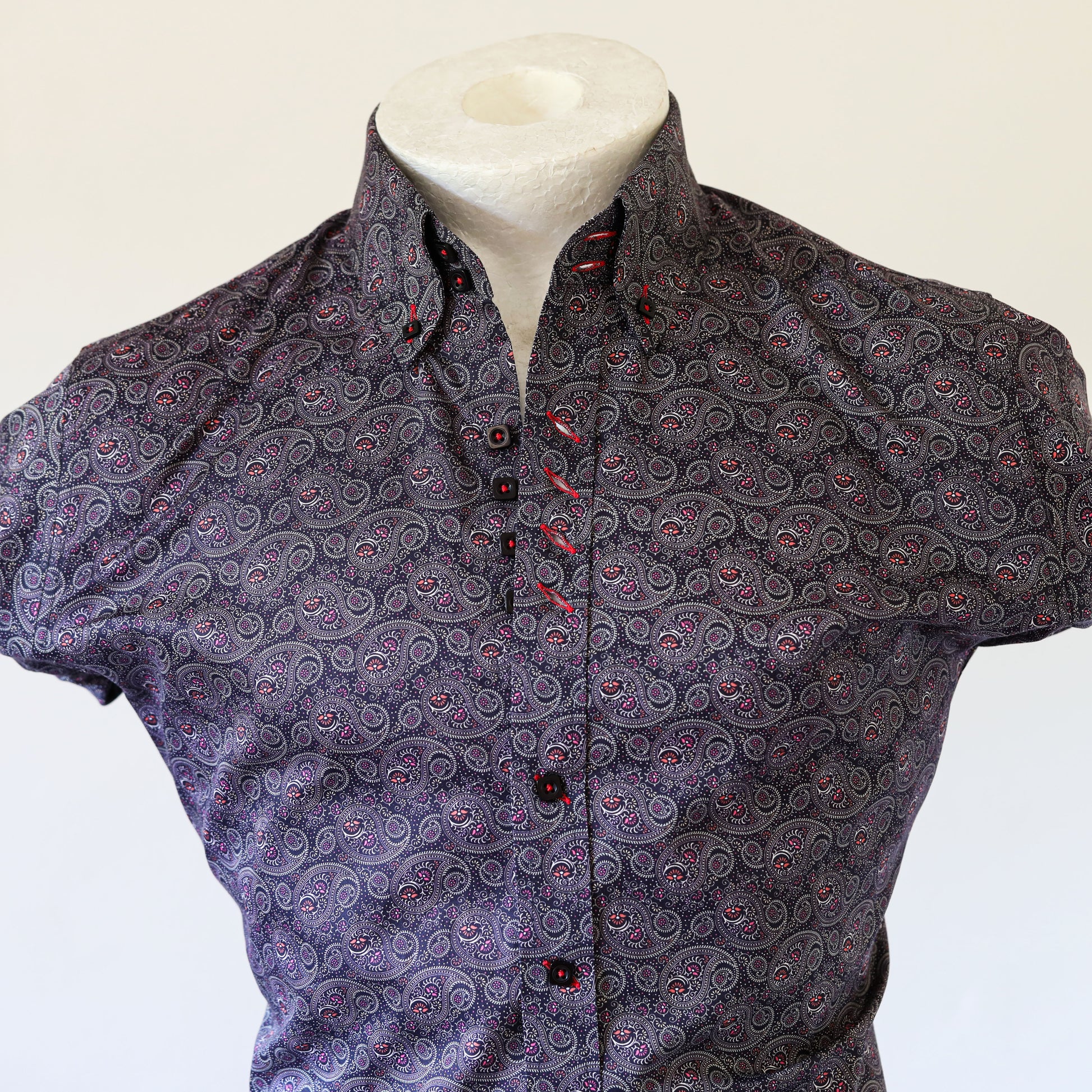 Made from super fine, breathable cotton, this shirt offers a luxuriously soft feel while keeping you comfortable in any setting. Every detail is laser printed with pinpoint precision, ensuring sharp patterns that retain their vibrancy wash after wash. The finishing touches β jet-black buttons stitched with red thread β showcase meticulous attention to detail, highlighting its tailored artistry.