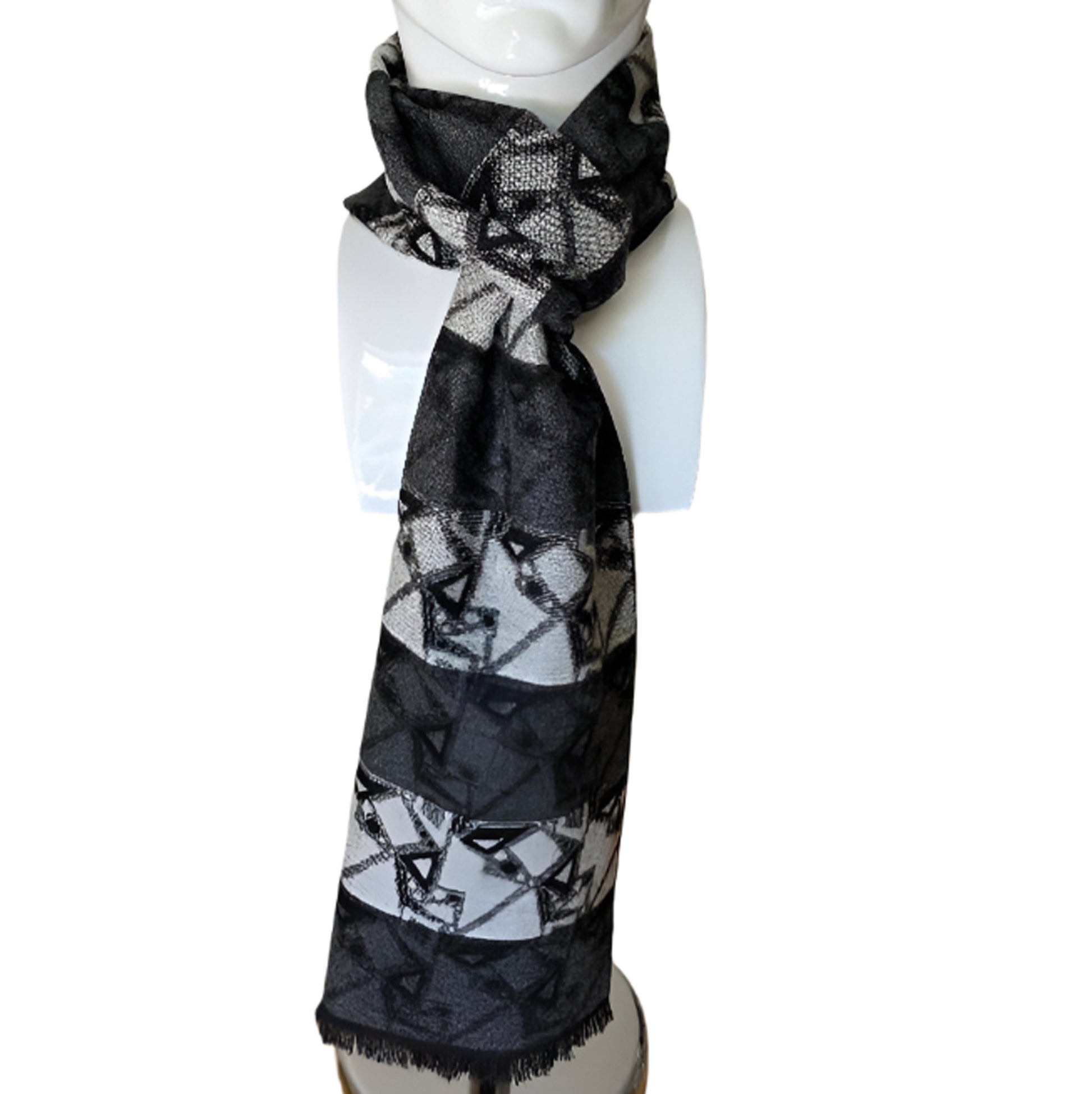Reversible Wool & Lace Statement Scarf – Black Elegance Meets Bold Geometry