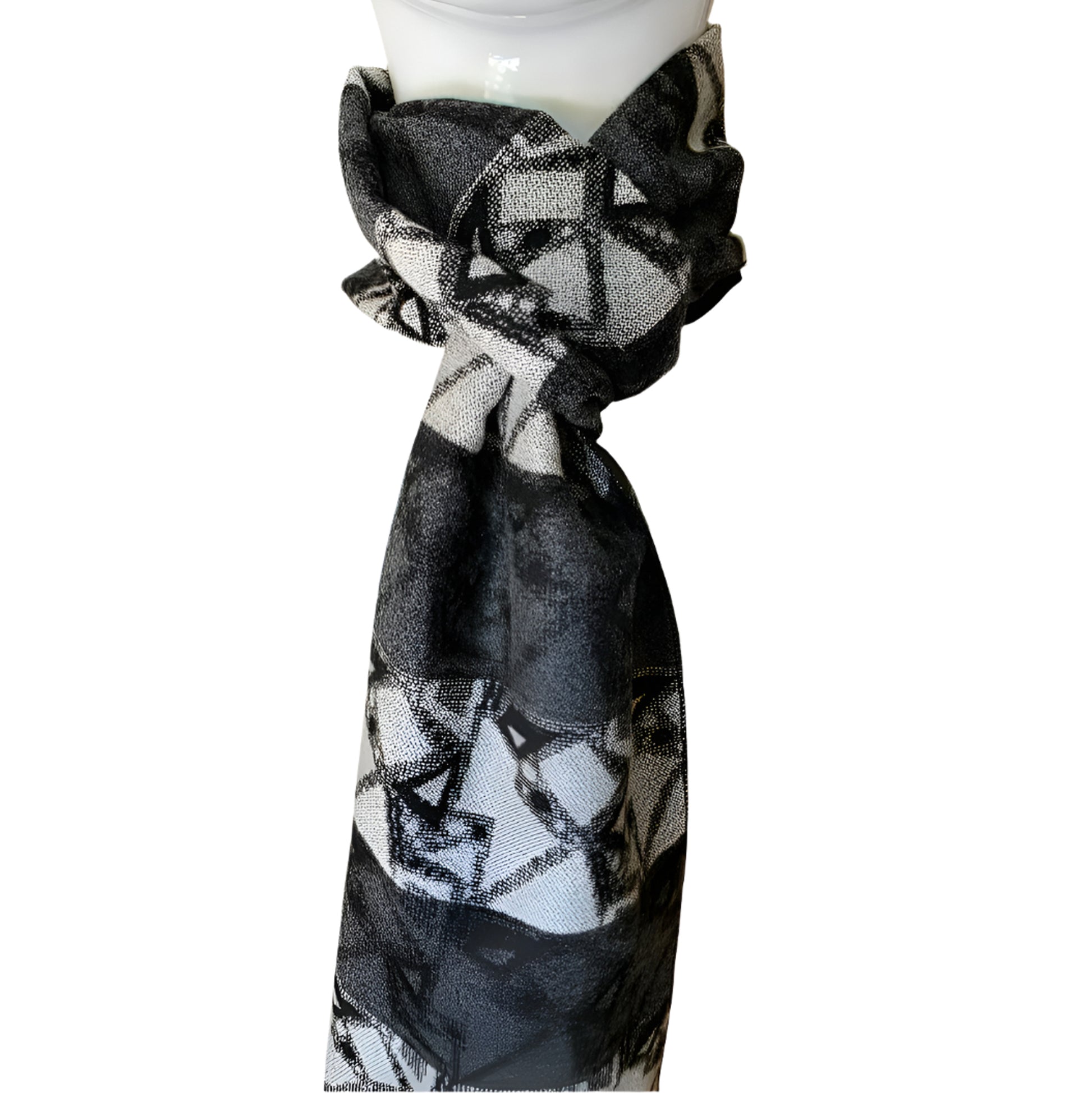 Add an edge of refined artistry to your wardrobe with this one-of-a-kind reversible wool scarf, a sophisticated blend of texture, structure, and modern design. Crafted to make a statement, this scarf fuses soft wool warmth with a daring geometric lace overlay—perfect for those who appreciate timeless fashion with an avant-garde twist.