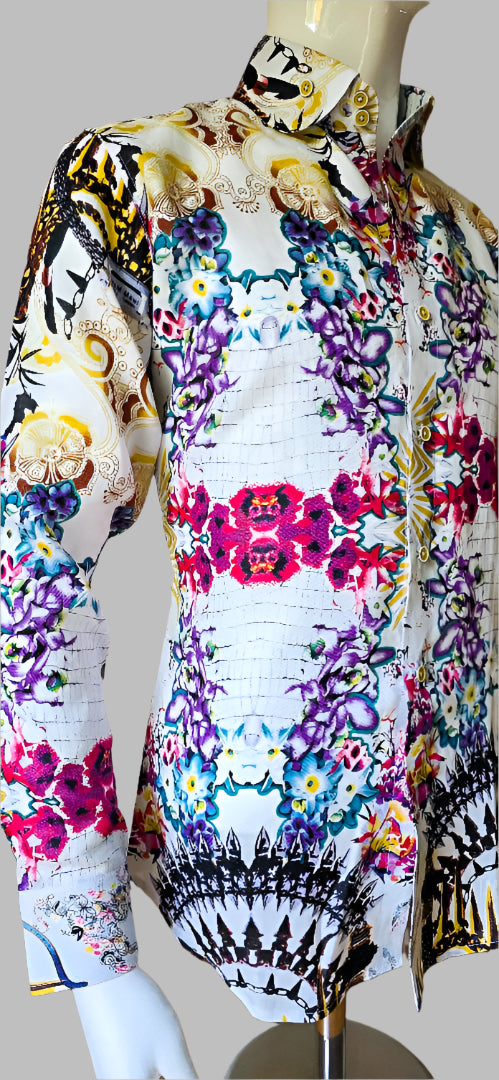 Men’s Designer Linen Shirt – Bold Floral & Abstract Print (Size: Small)