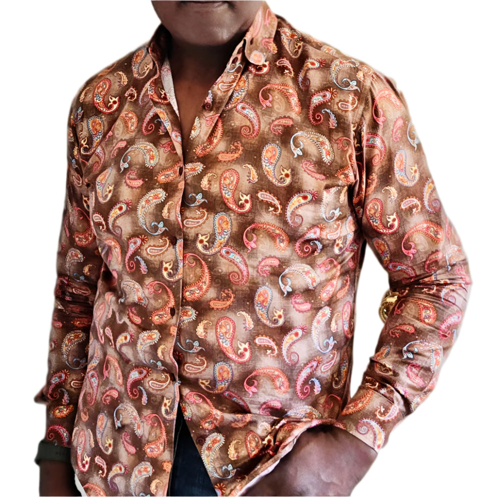 This isn’t a flat or printed-on look—each paisley seems woven into the shirt thanks to depth-enhancing shading and colour layering, achieved only through premium digital techniques.